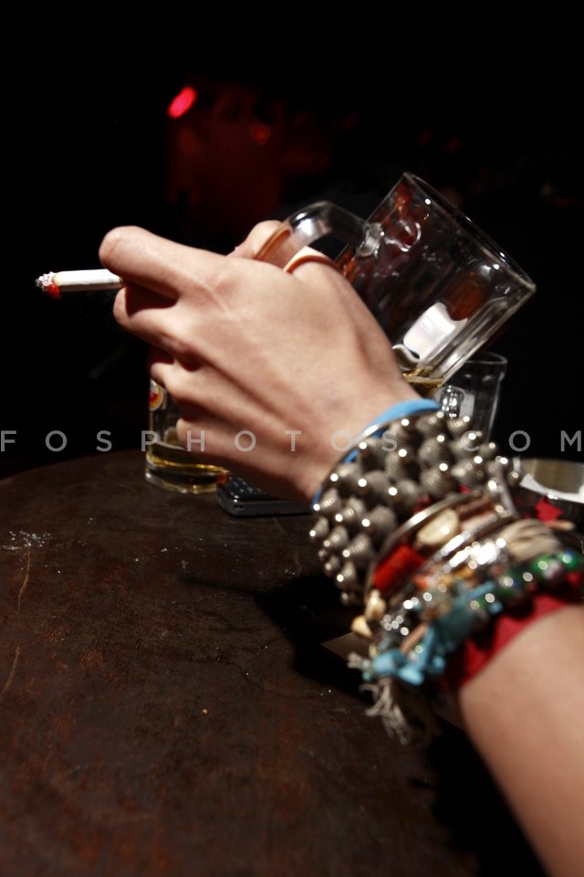 Hand of young woman holding a cigarette …