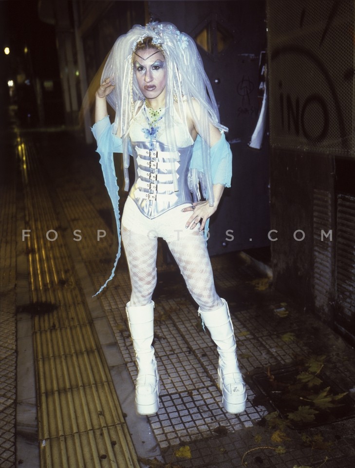 Goth girl in silver, Athens, Greece, 2005