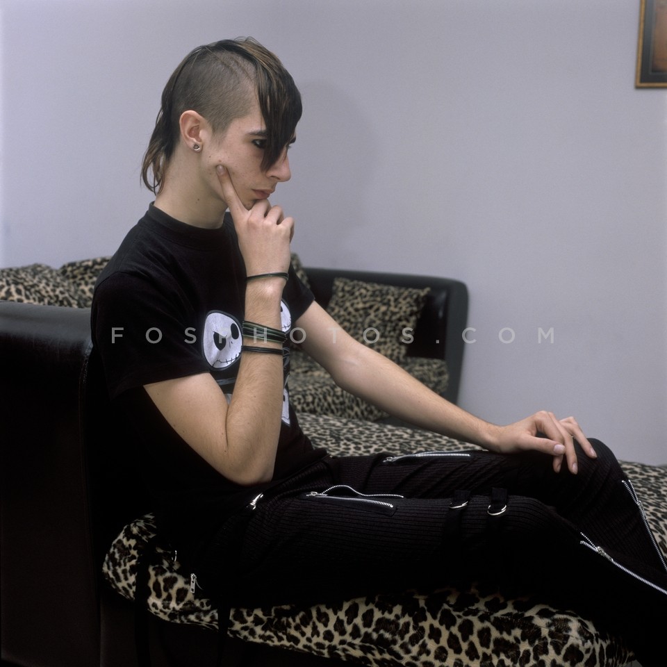 Young goth posing in his living room, At…