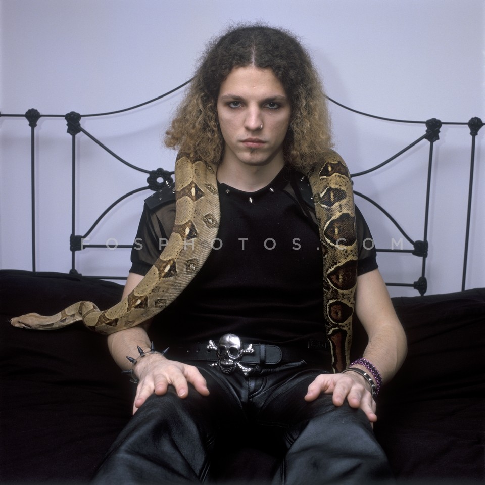 Young goth posing with a snake around hi…