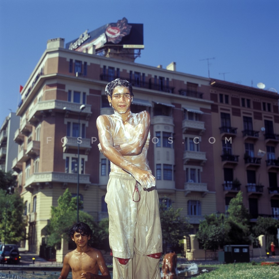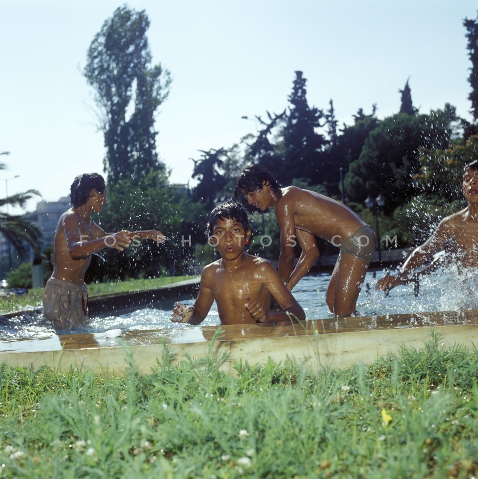 Gypsy boys bathing in the fountain acros…