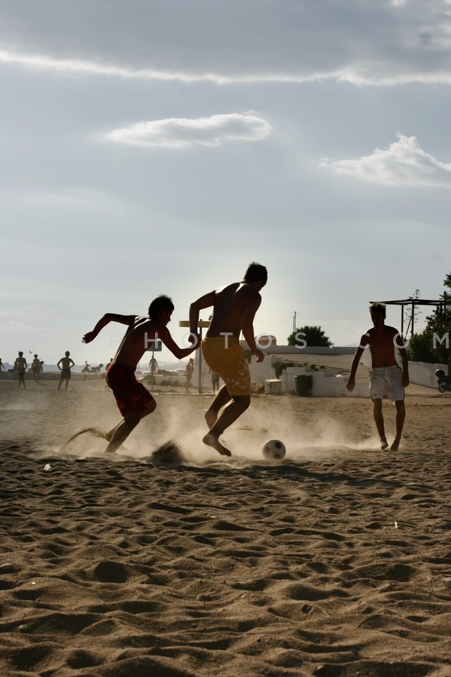 Group of boys playing football in the sa…
