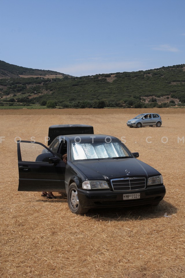 Mercedes parked in field next to the Sai…