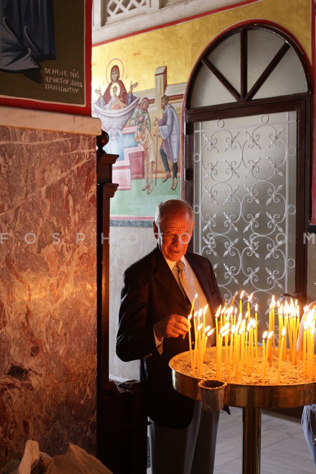 Elderly man lighting a candle at the chu…