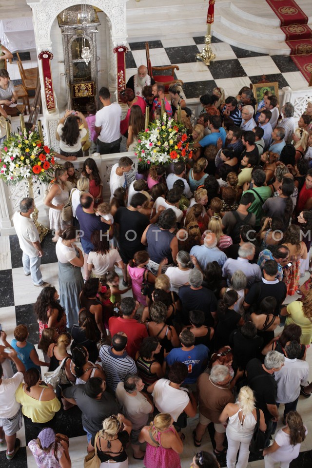 People waiting to worship sacred icon in…