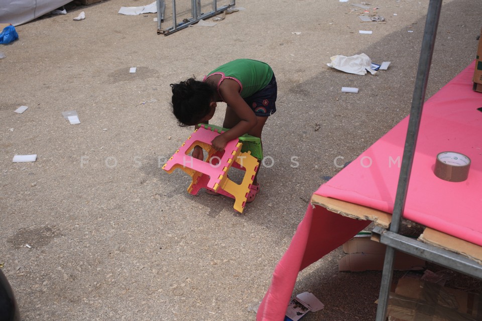Little girl with a stool at the bazaar n…