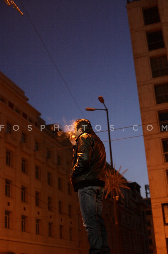 Man on Panepistimiou Street during the b…