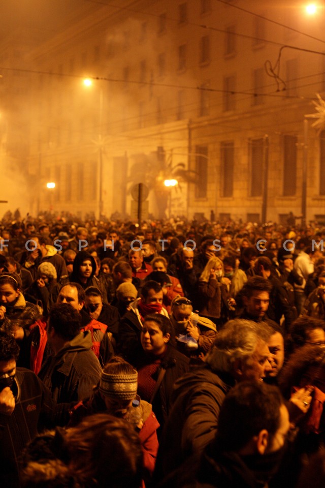 People on Stadiou Street amongst teargas…