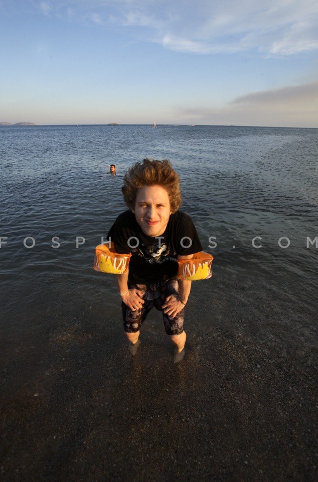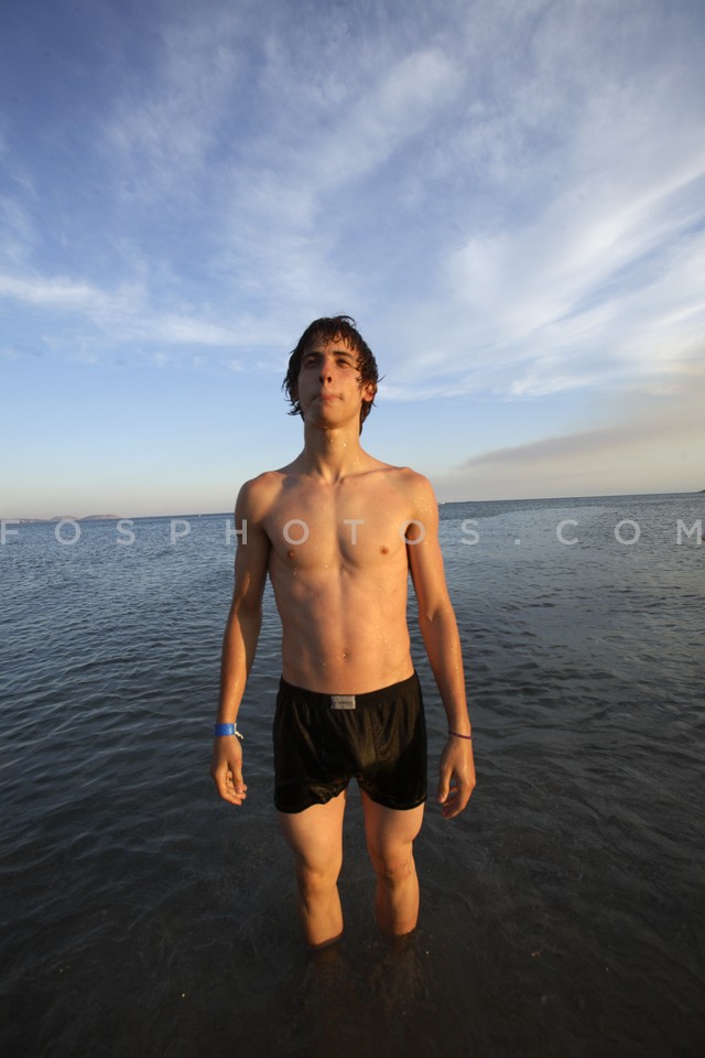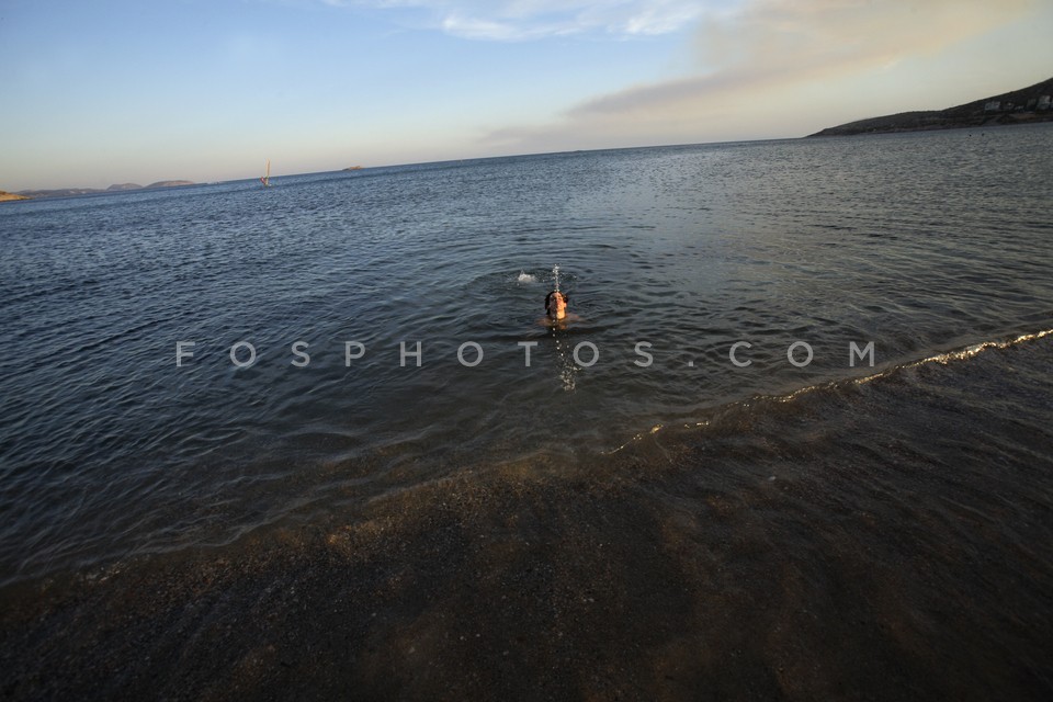 Boy swimming in Varkiza, Attica, Greece