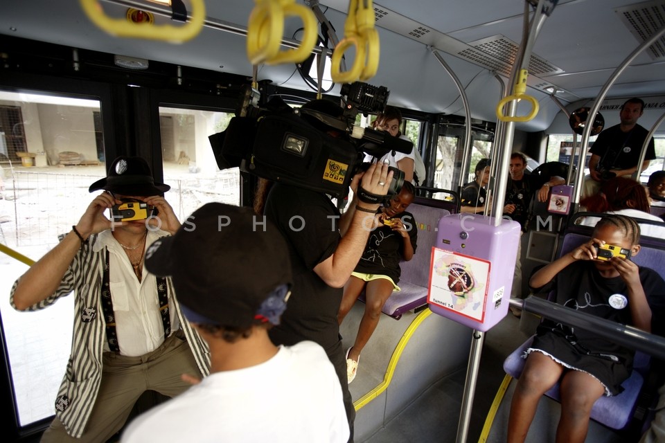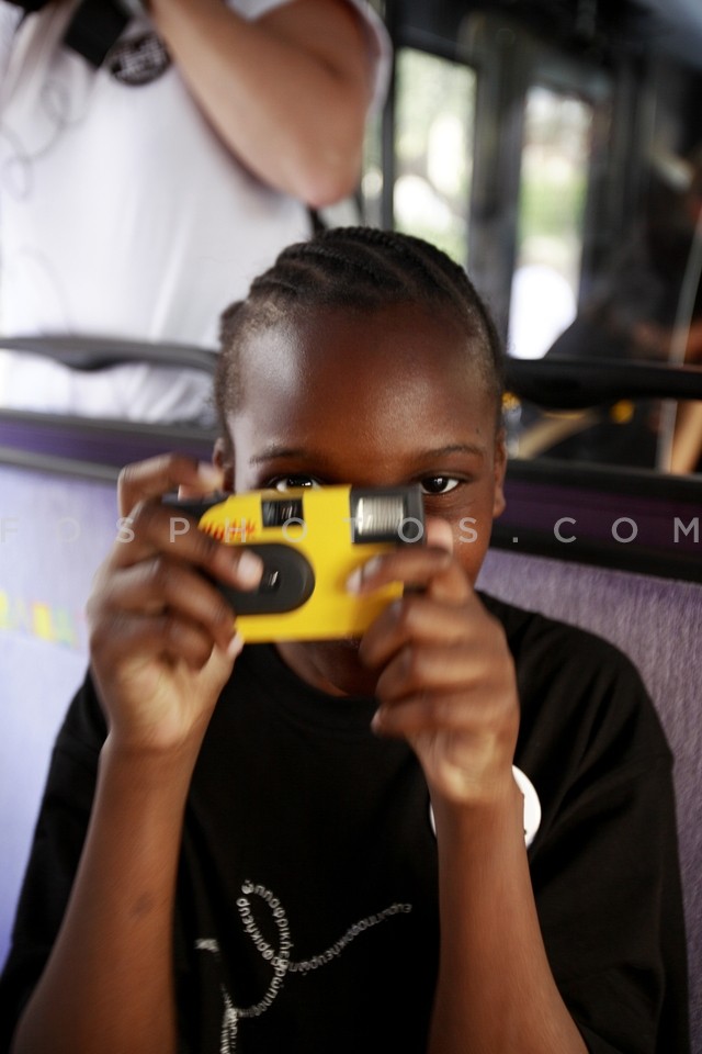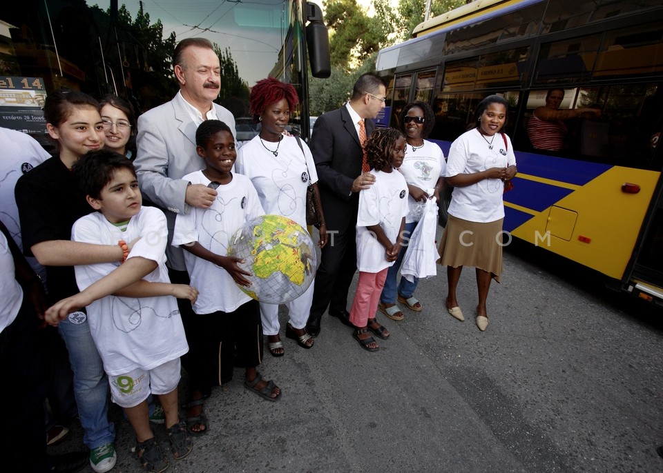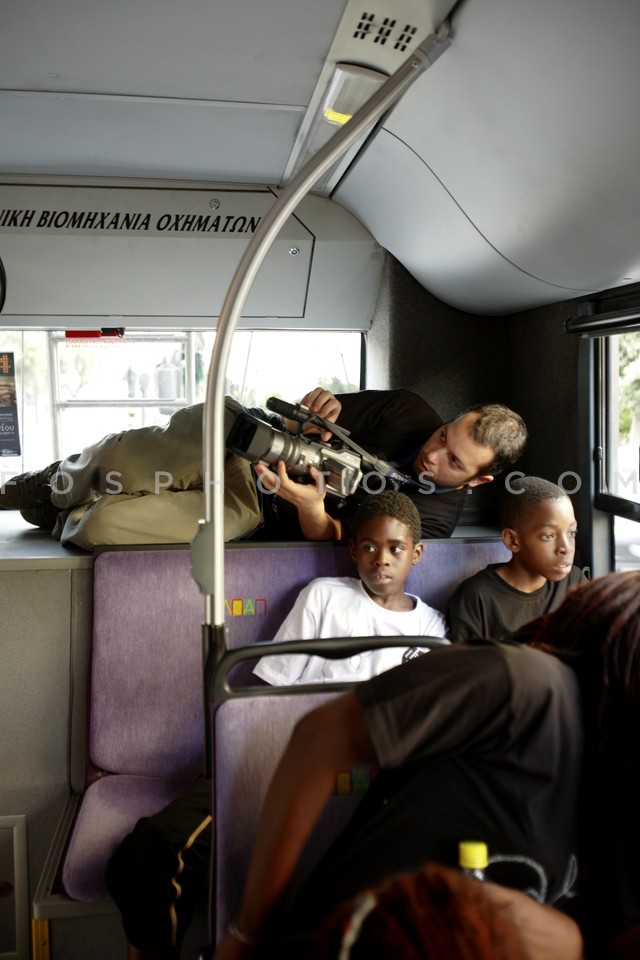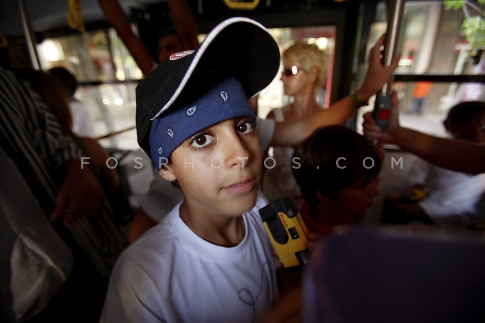Boys on trolley bus of line 14, particip…