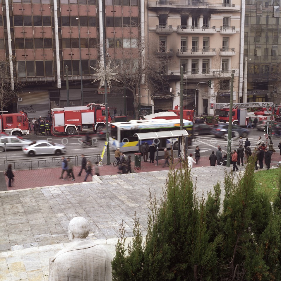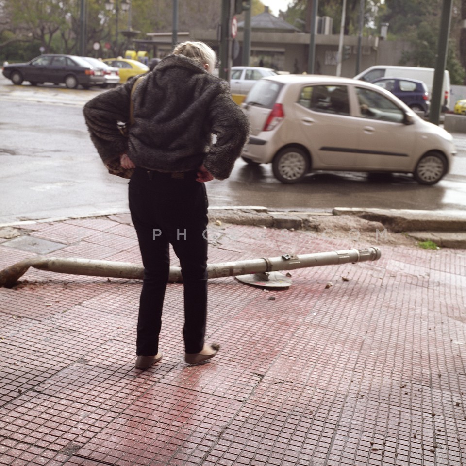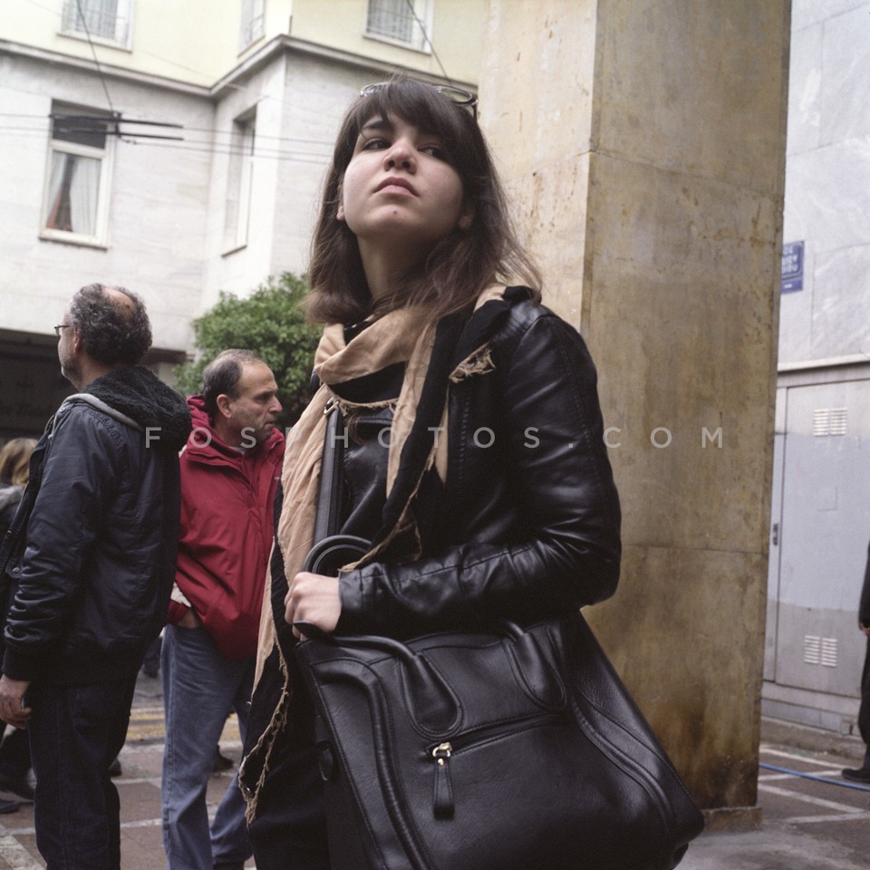 Young woman on Stadiou Street the day af…