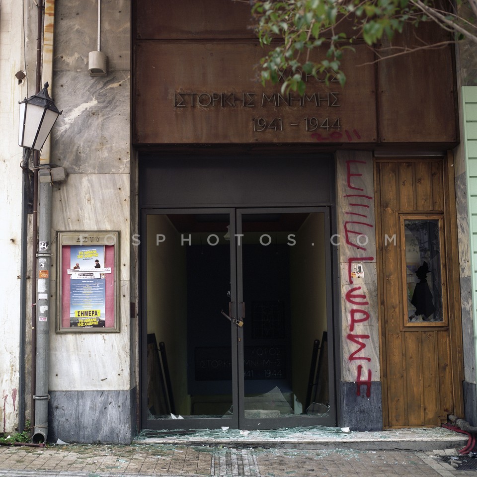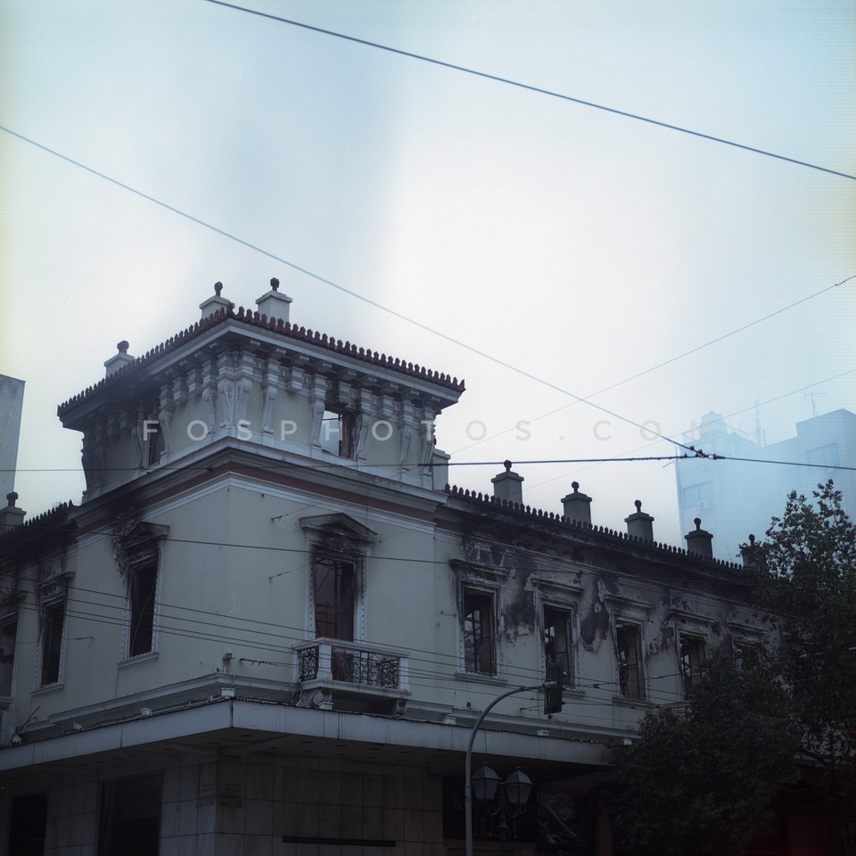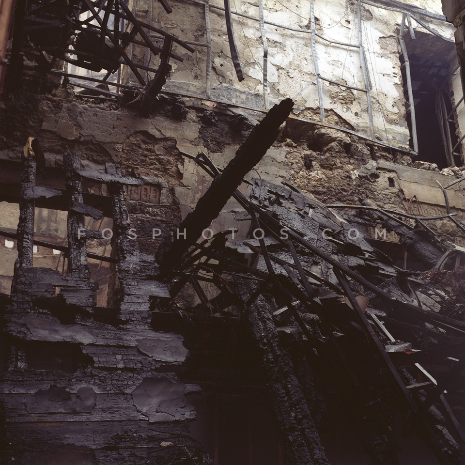 Burned wall of Attikon Cinema the day af…