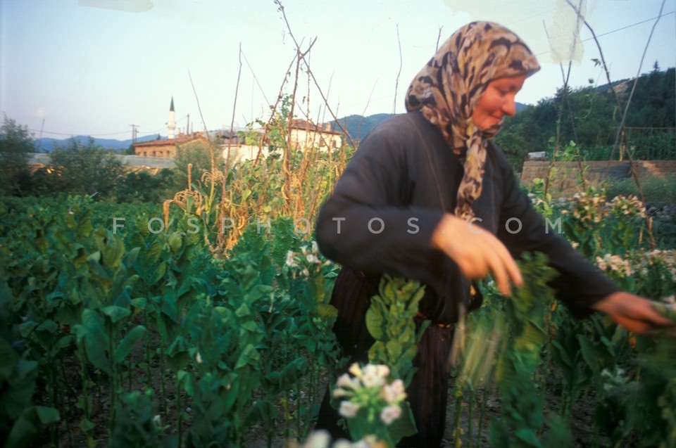 Pomak woman in tobacco field, Thrace, Gr…