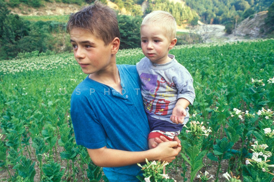 Two Pomak brothers in tobacco field, Thr…