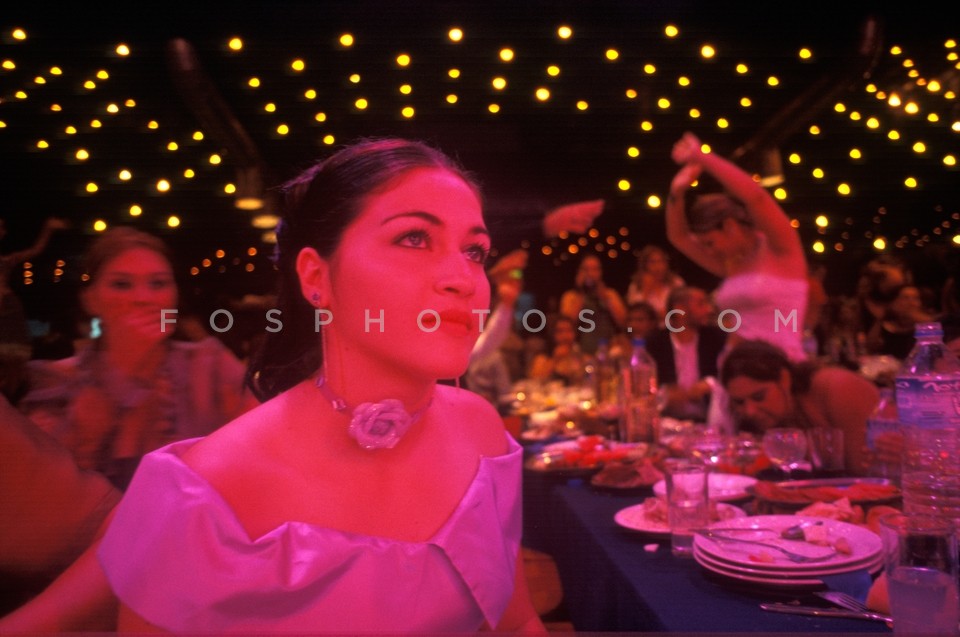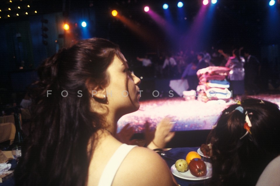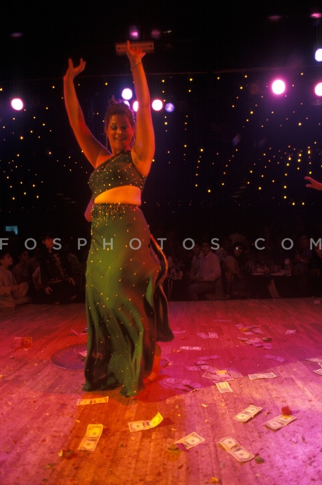 Woman dancing tsifteteli while the dance…