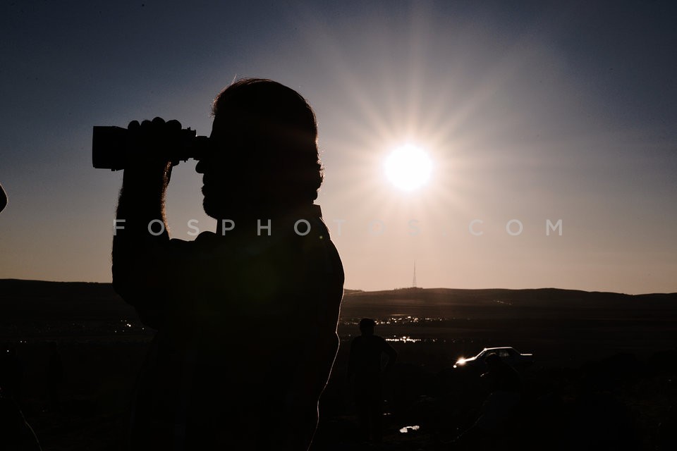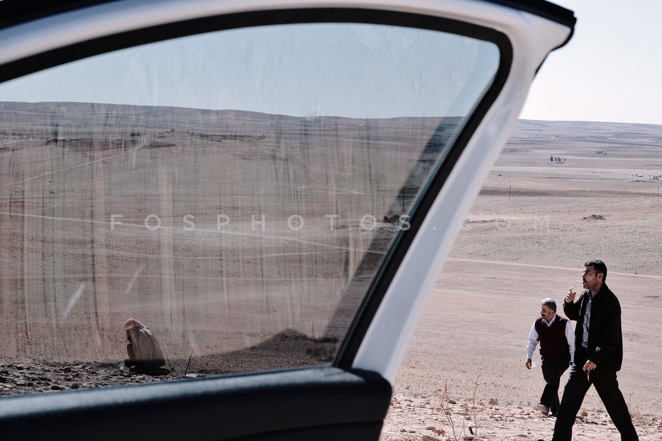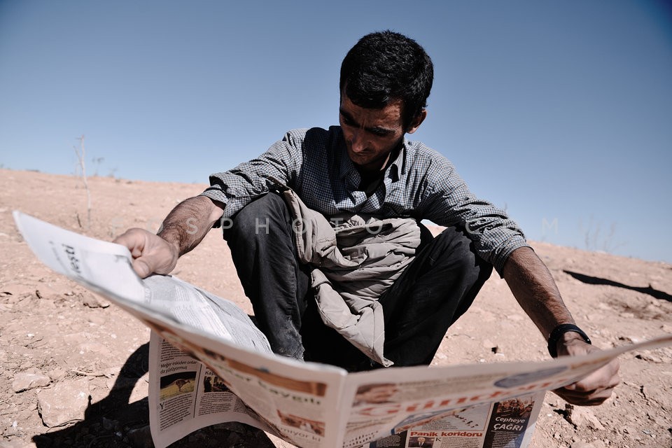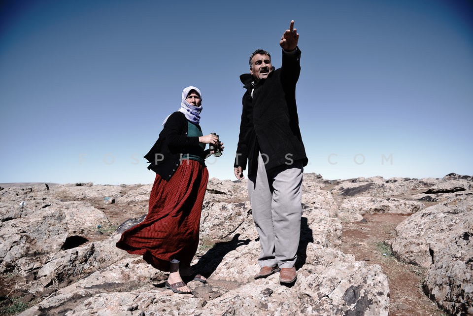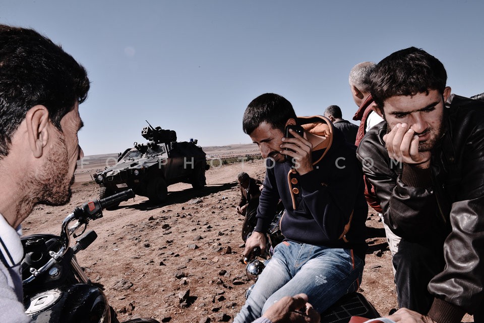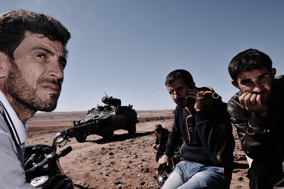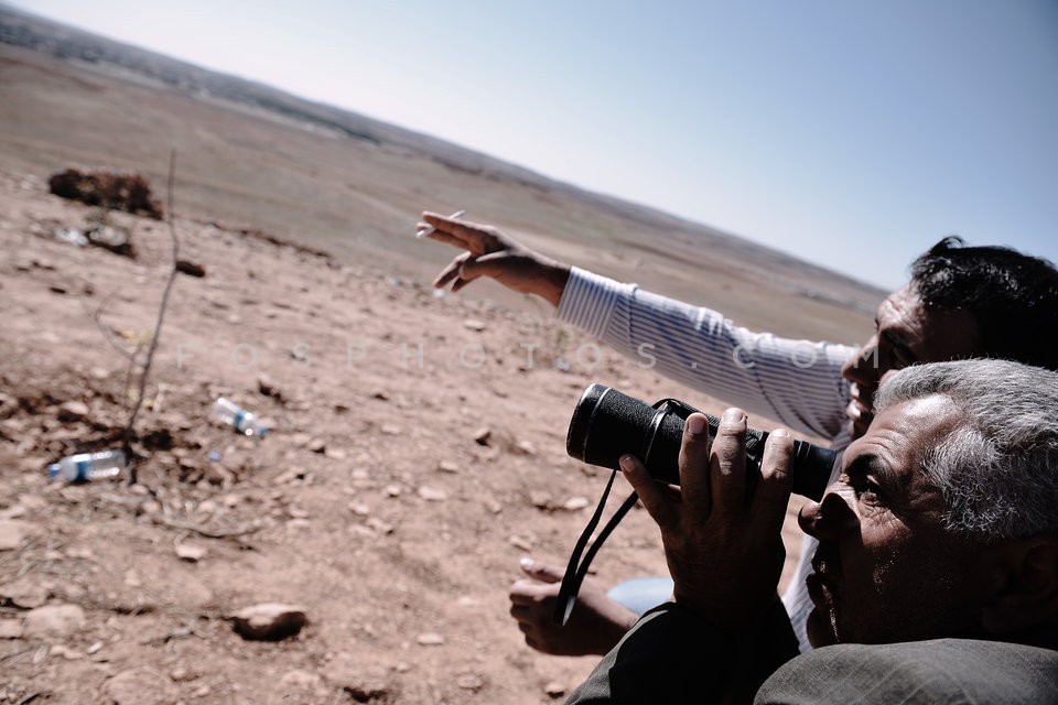 Kurdish refugees watch the battle of Kobane