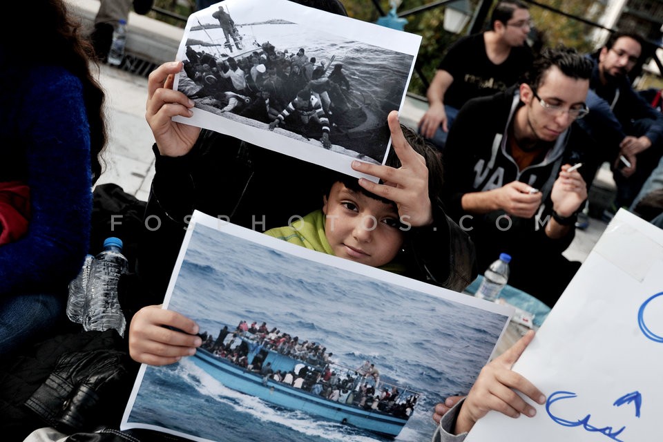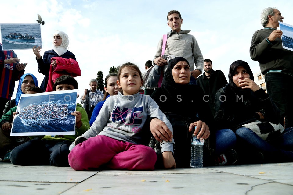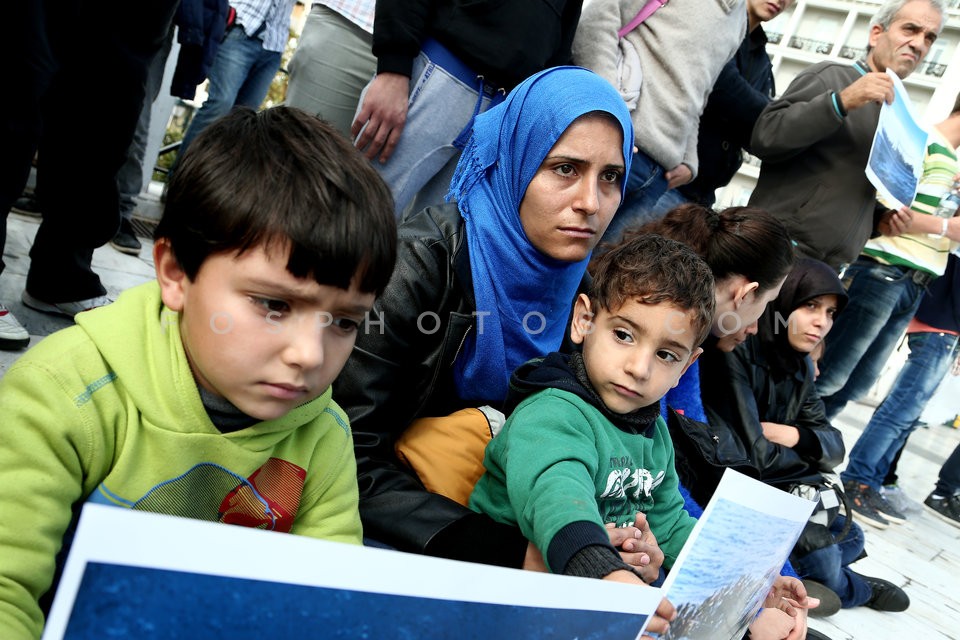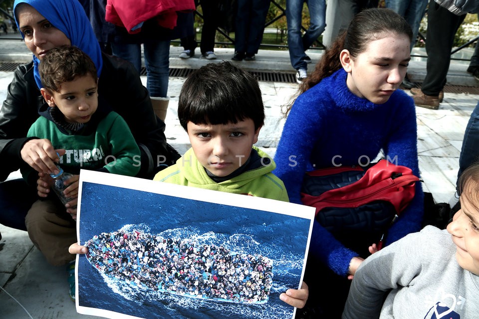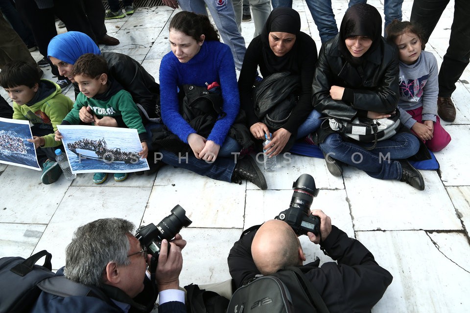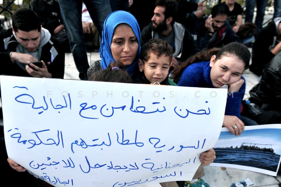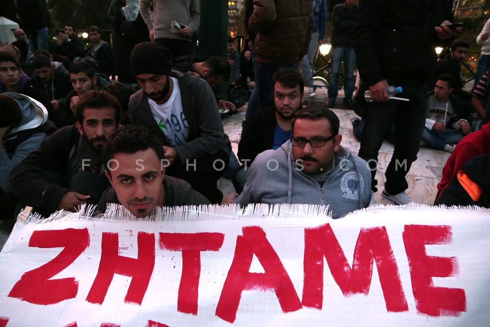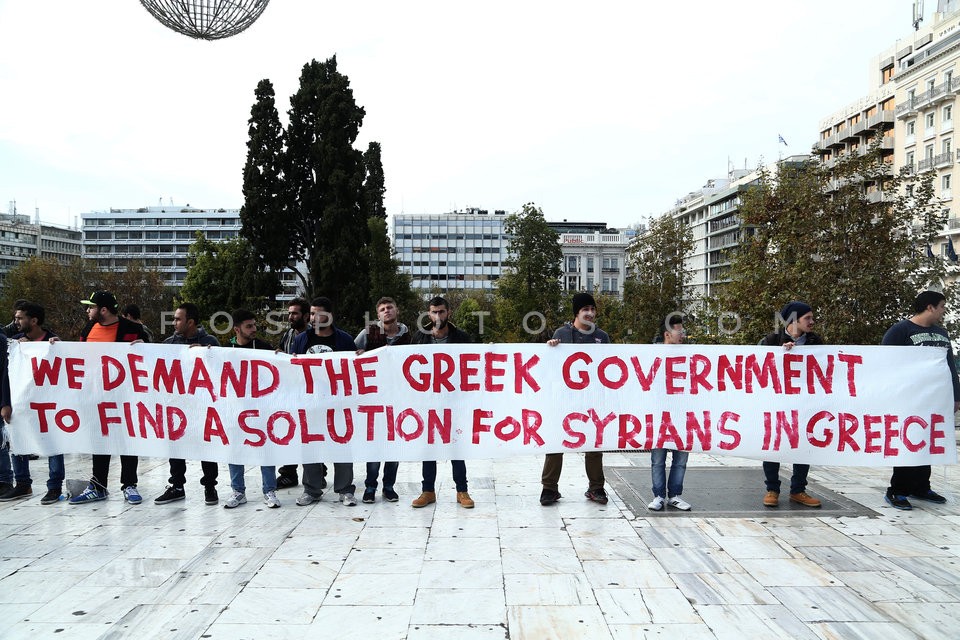Refugees from Syria gathered in Syntagma…