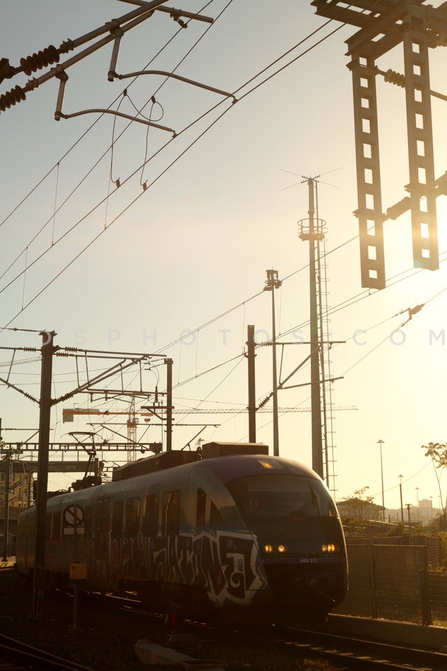 The electric railway arriving at the ter…