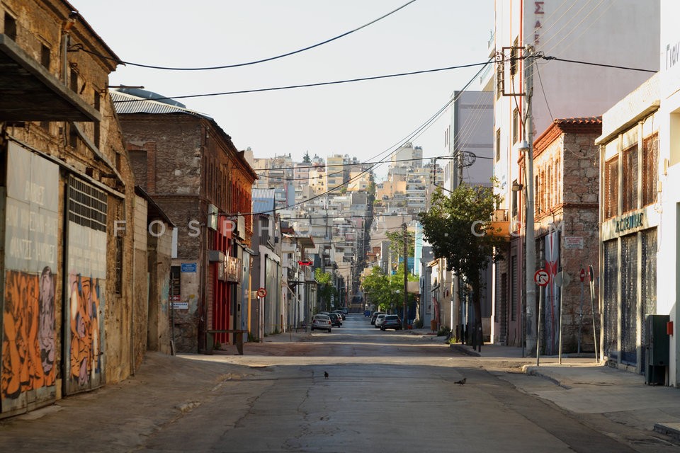 Deserted alley behind the port of Piraeu…