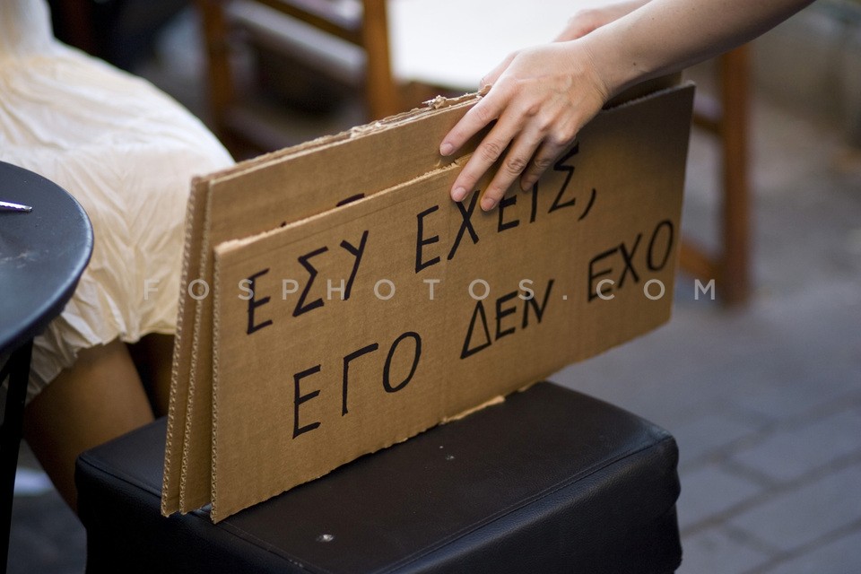 Slogan "You have, me I don't have" in a …