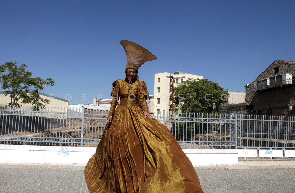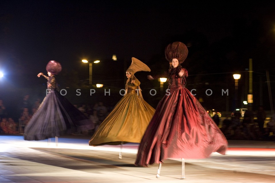 Stilts on Sunday outdoor show in Thision…