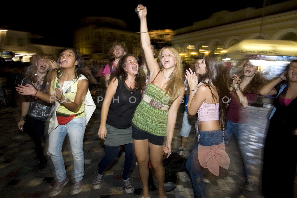 People watching a live music concert in …