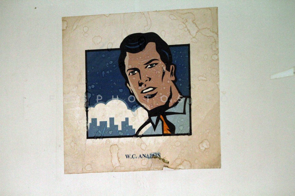 Window male mannequin and painting throw…