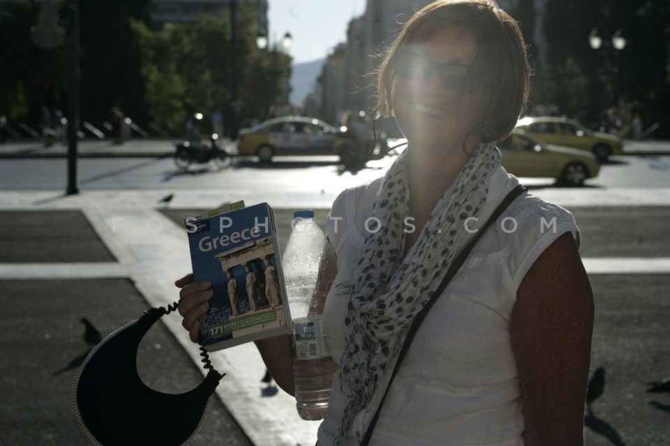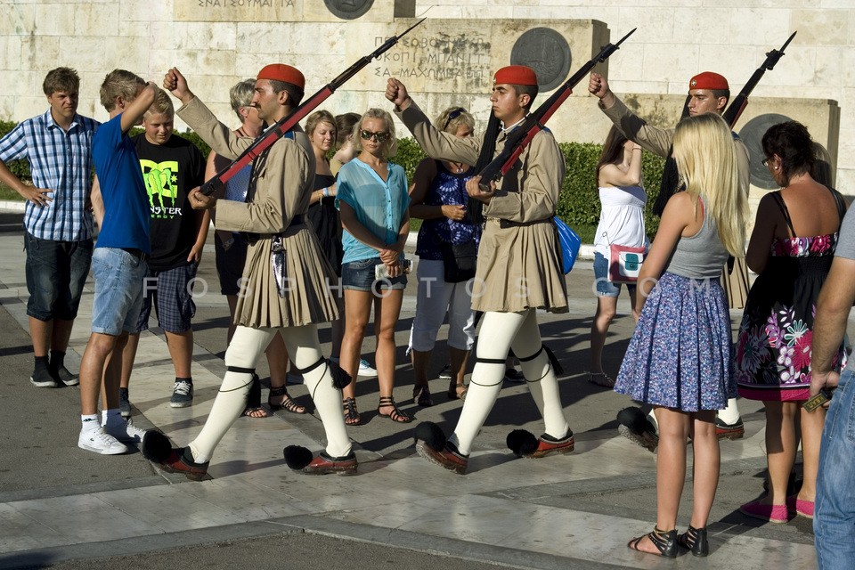 Tourists in front of the Greek Parliamen…