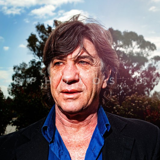 Actor Nikos Kouris posing before a theat…