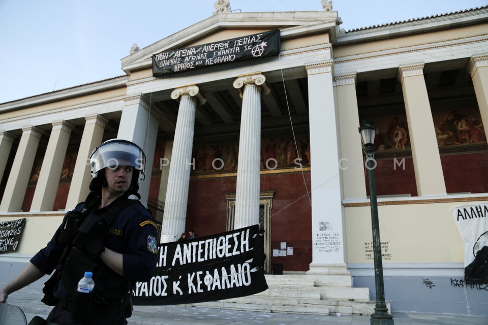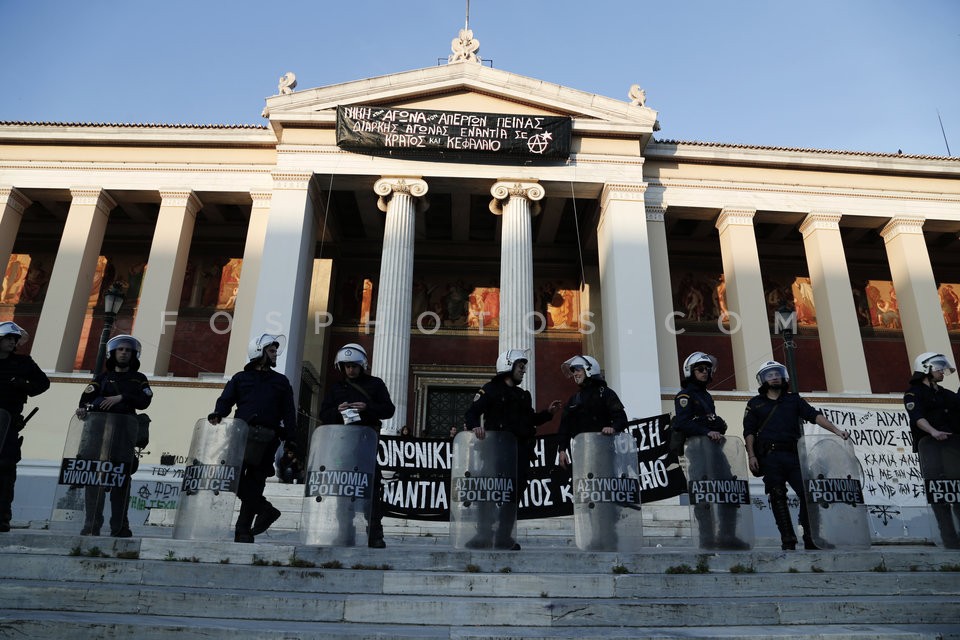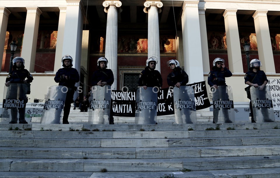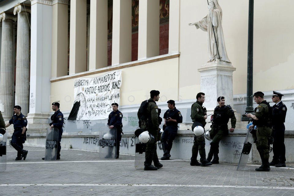 Riot police, blocked the entrance of Ath…
