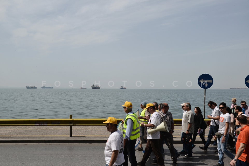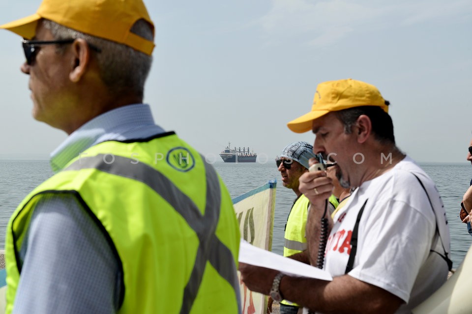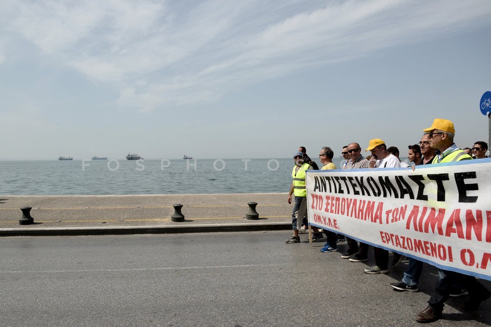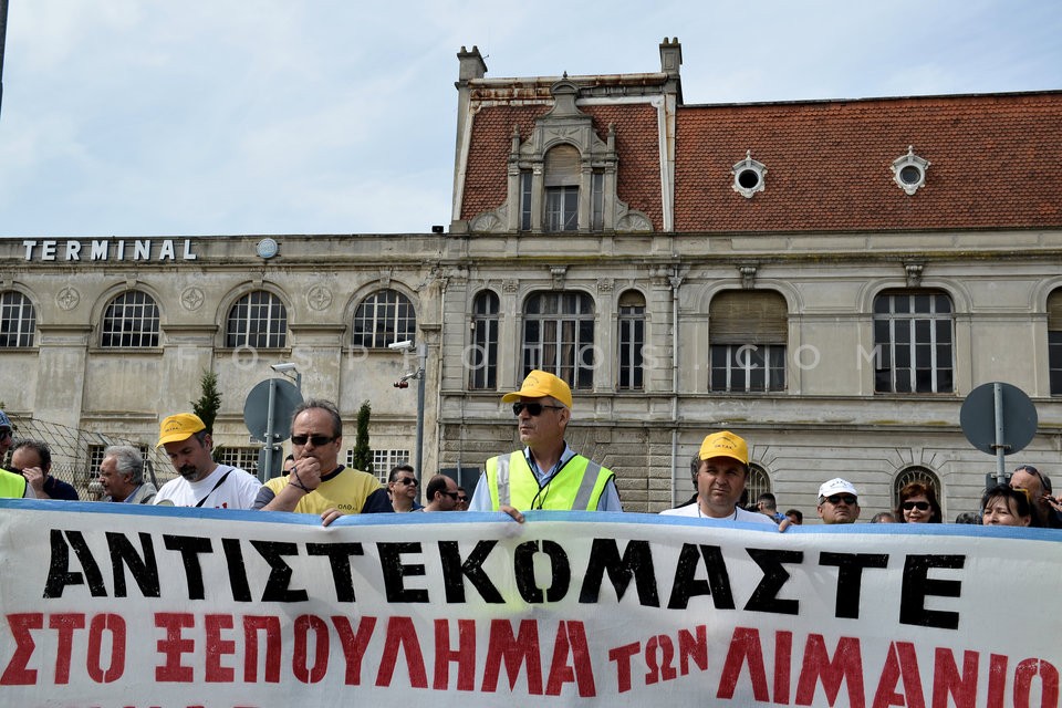 Port employees demonstrate against the p…