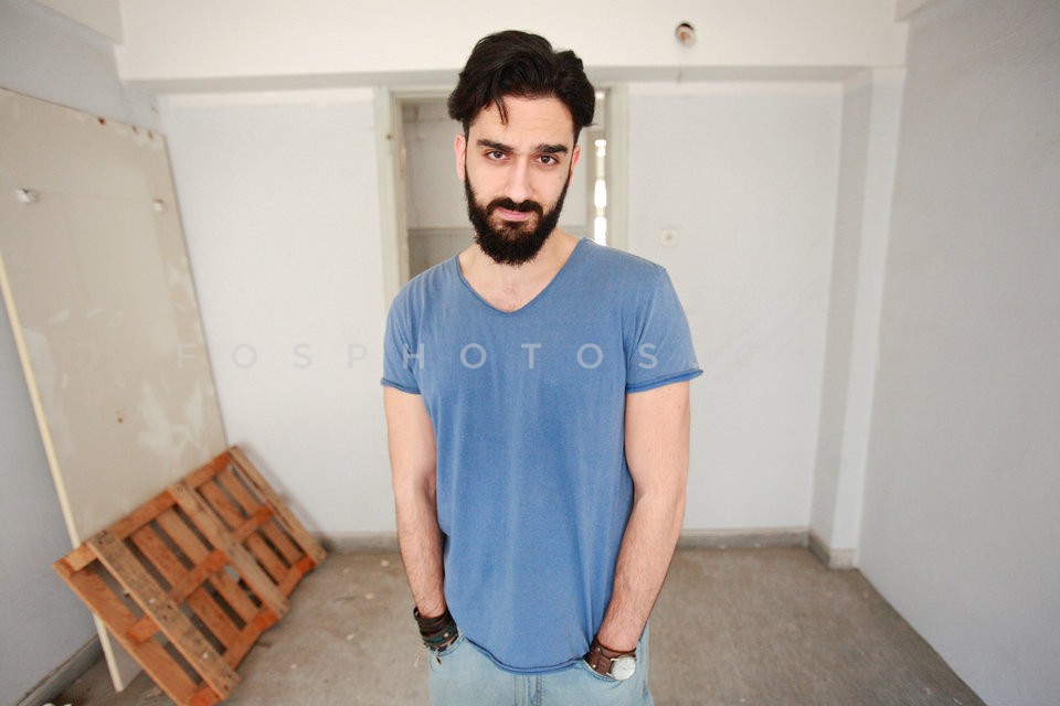 Dionysis Atzarakis, performer at stand u…