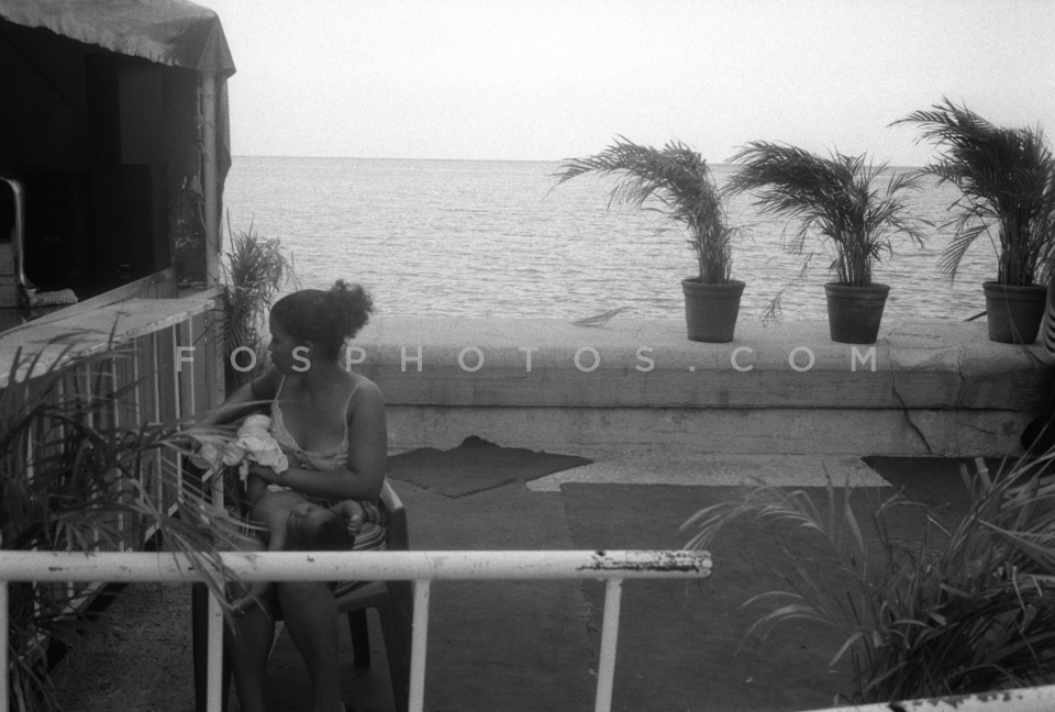 Woman with baby on the balcony, Havana, …