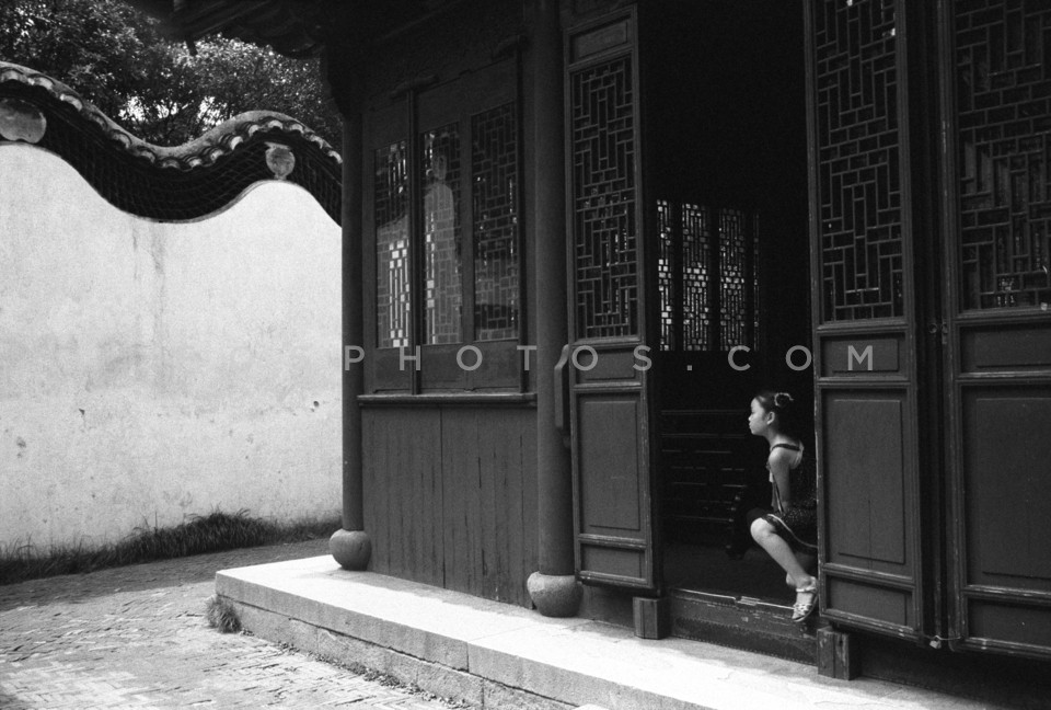 Small girl in a traditional pagoda entra…