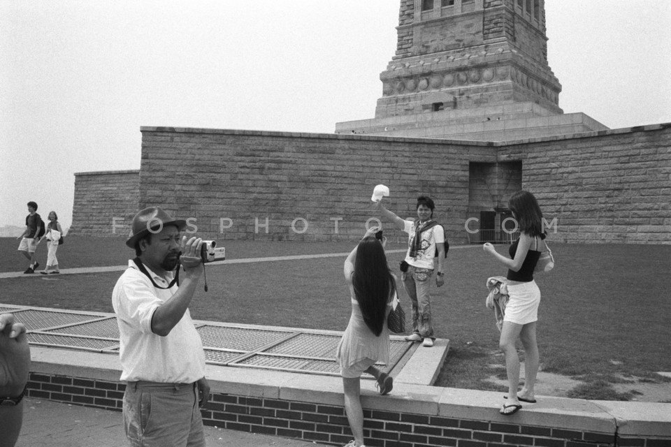 Tourists visiting the Statue of Liberty,…