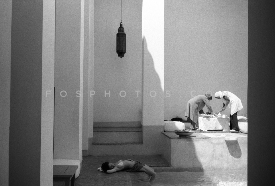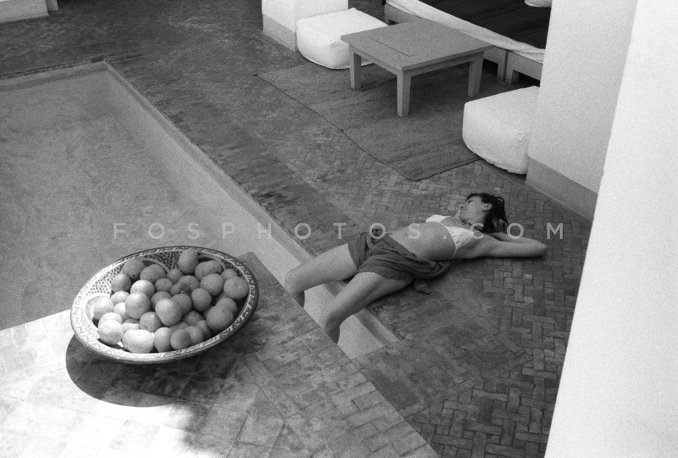 Woman lying in the hotel pool, Marrakech…