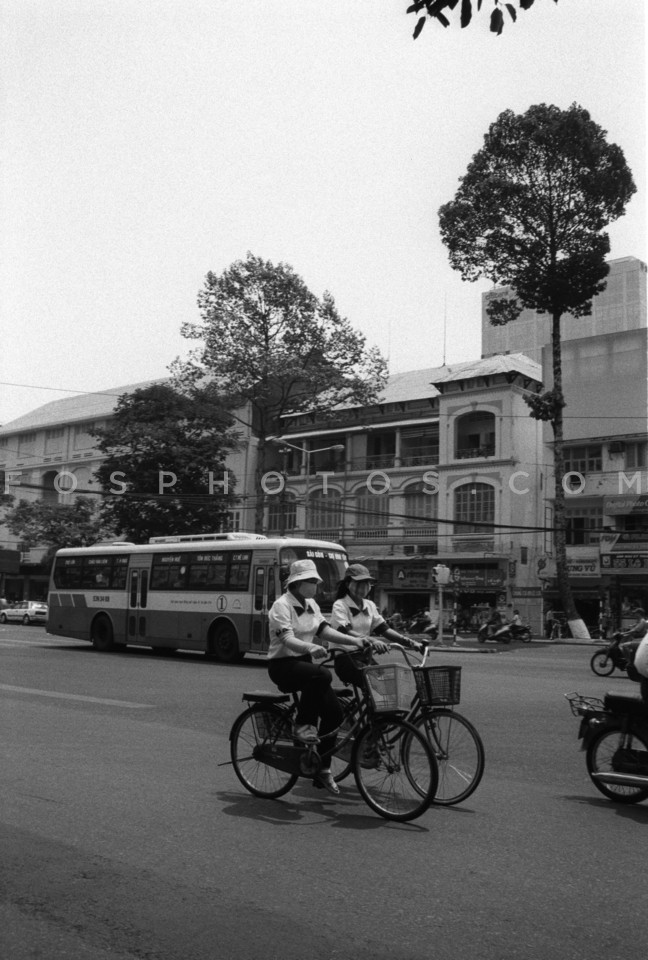 Masked bicycle riders in Ho Chi Minh Cit…