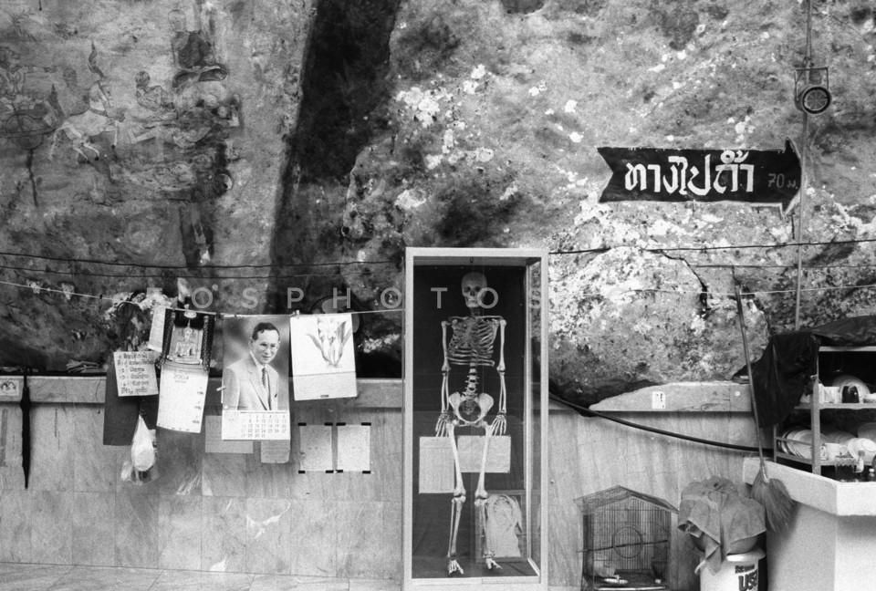 Skeleton inside a box by the road, Phuke…
