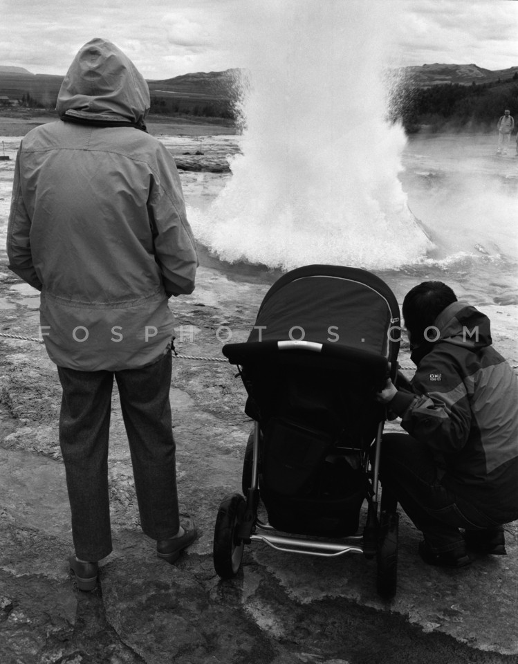 Family in front of a geyser in Iceland, 2006