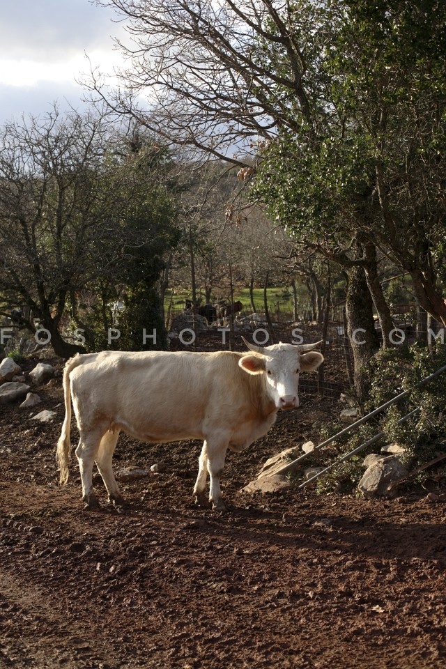 Cow in a farm in the Anavra community in…