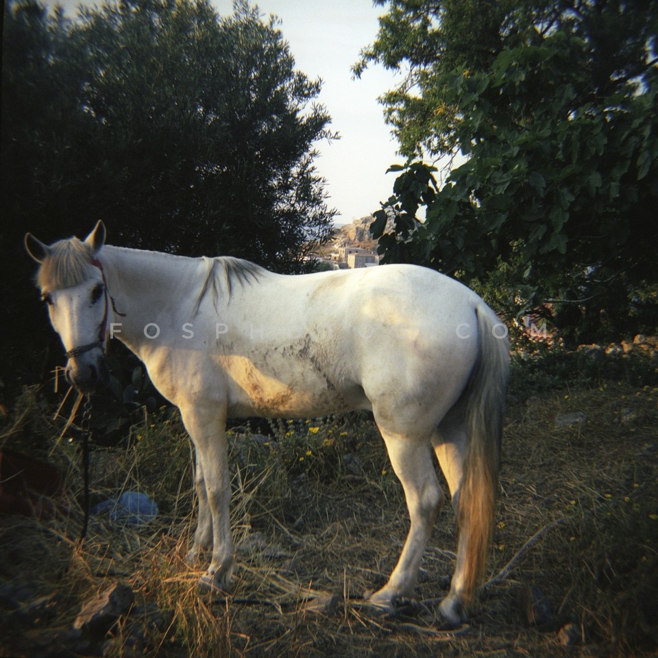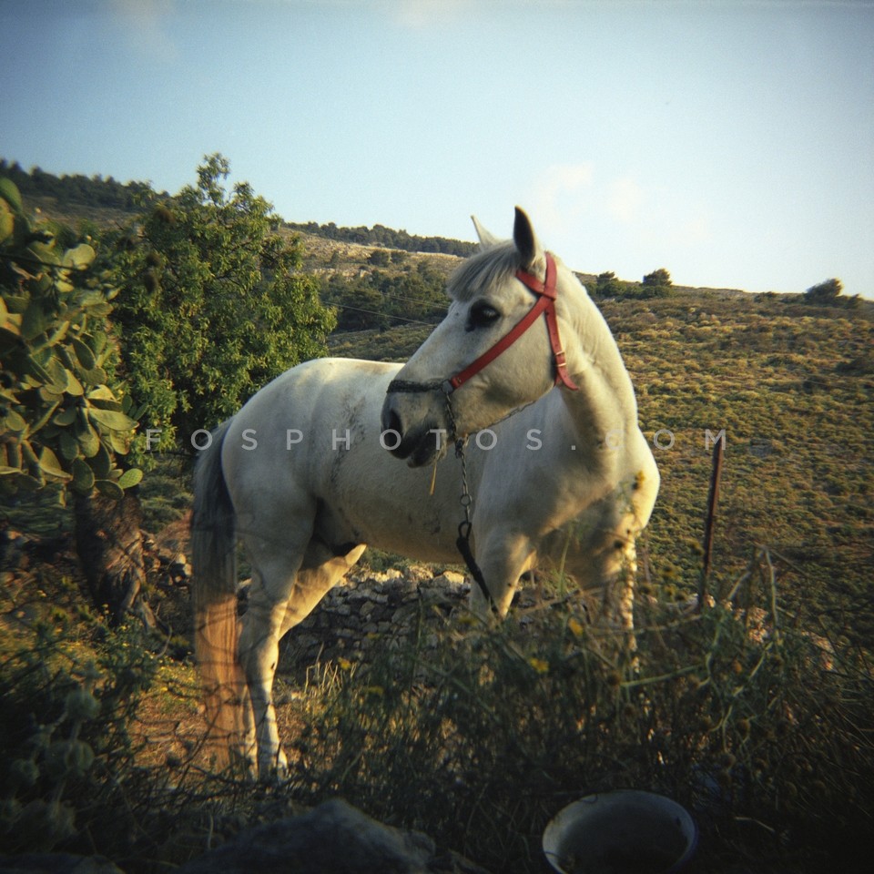 White horse in the countryside, Hydra Island