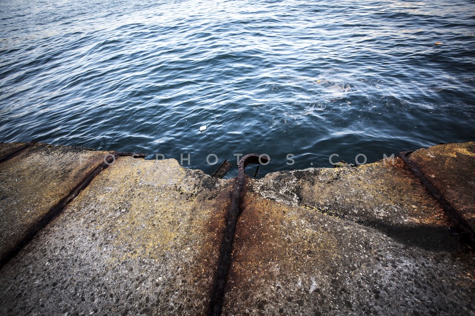 Damaged pier in the port of Piraeus, Ath…