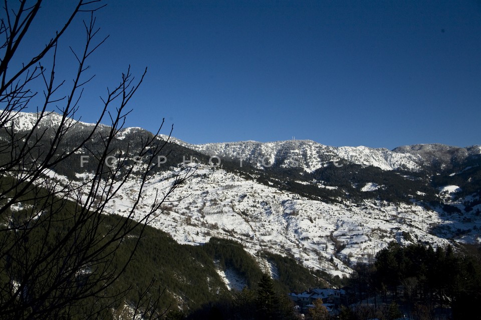 Snowy landscape in Parnitha, Attica, Greece