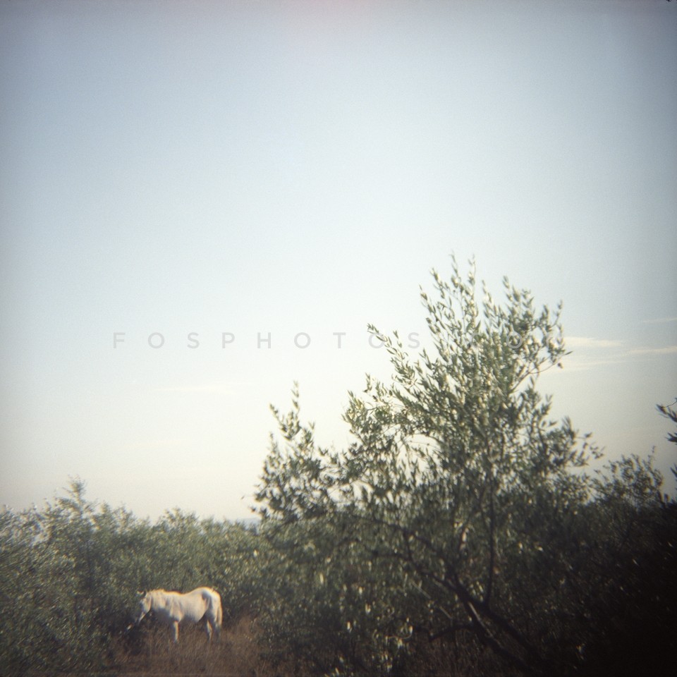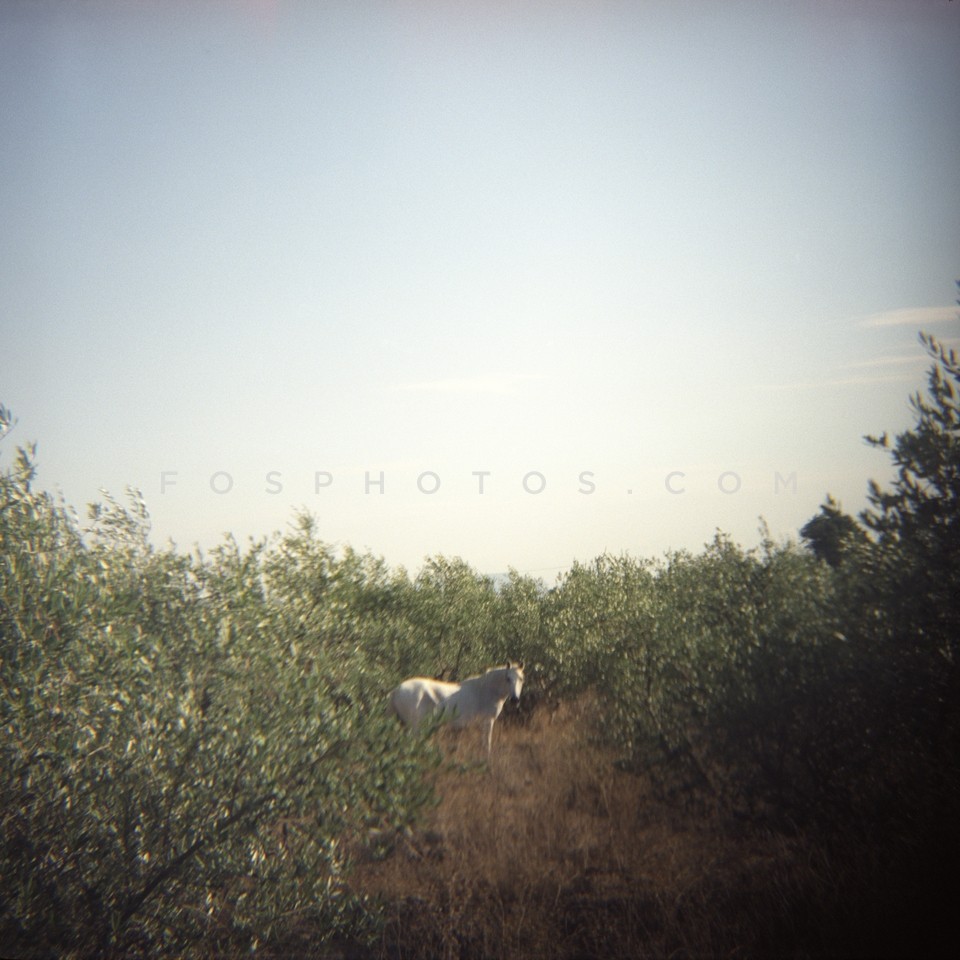 White horse in olive grove, Mani Peninsu…