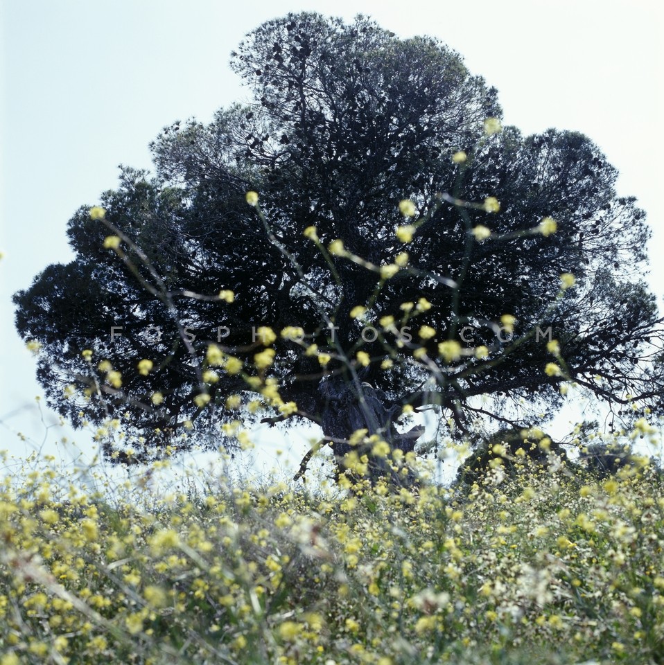 Tree and flowers in the Greek countryside