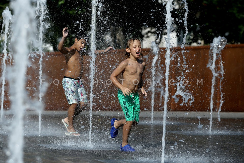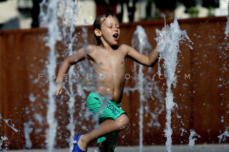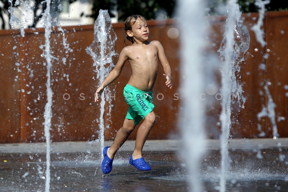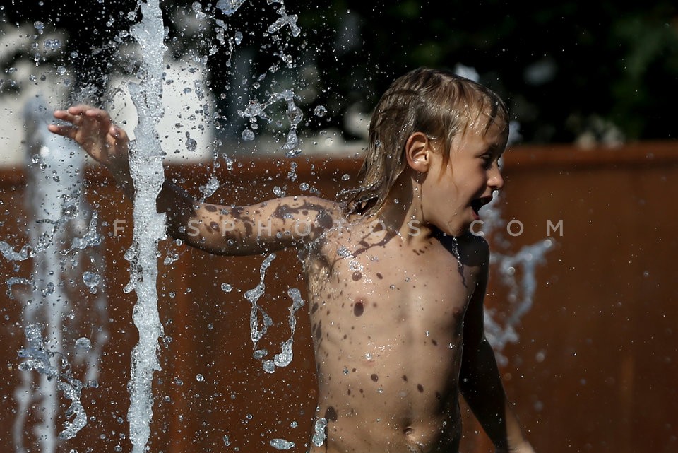 Children play at a fountain in Athens du…