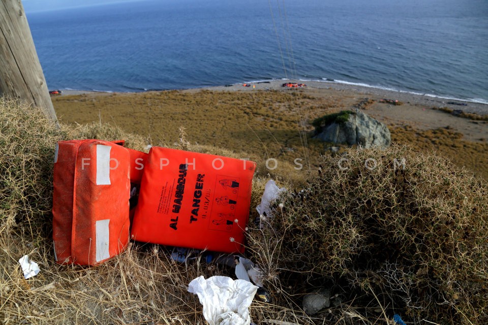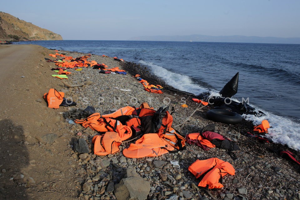 Life jackets which have used immigrants …