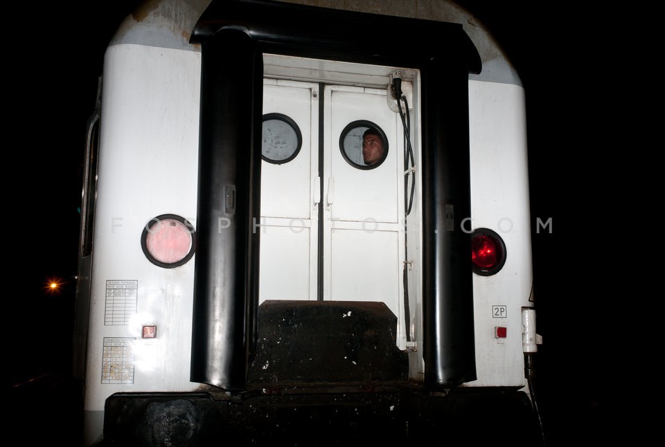 A refugee just borded on a train in Torv…