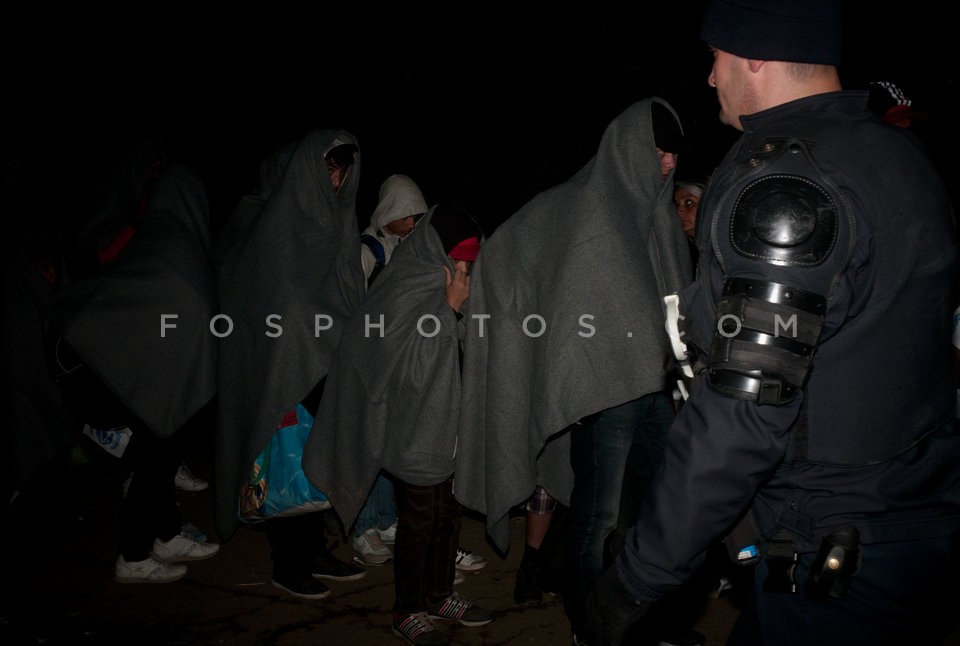 Refugees are covered with blankets, beca…