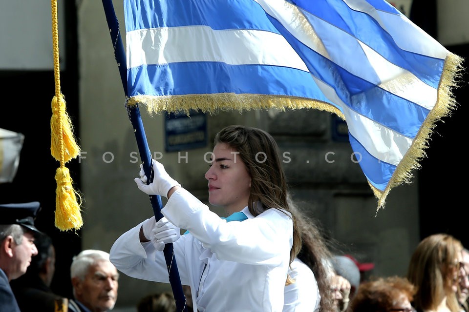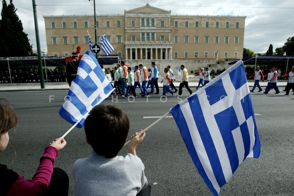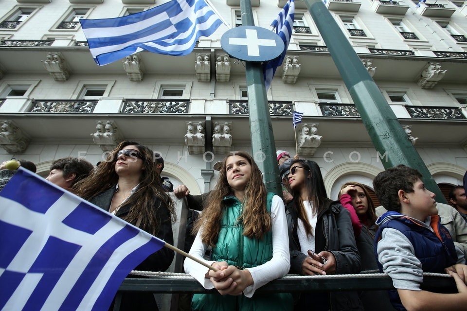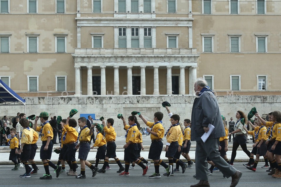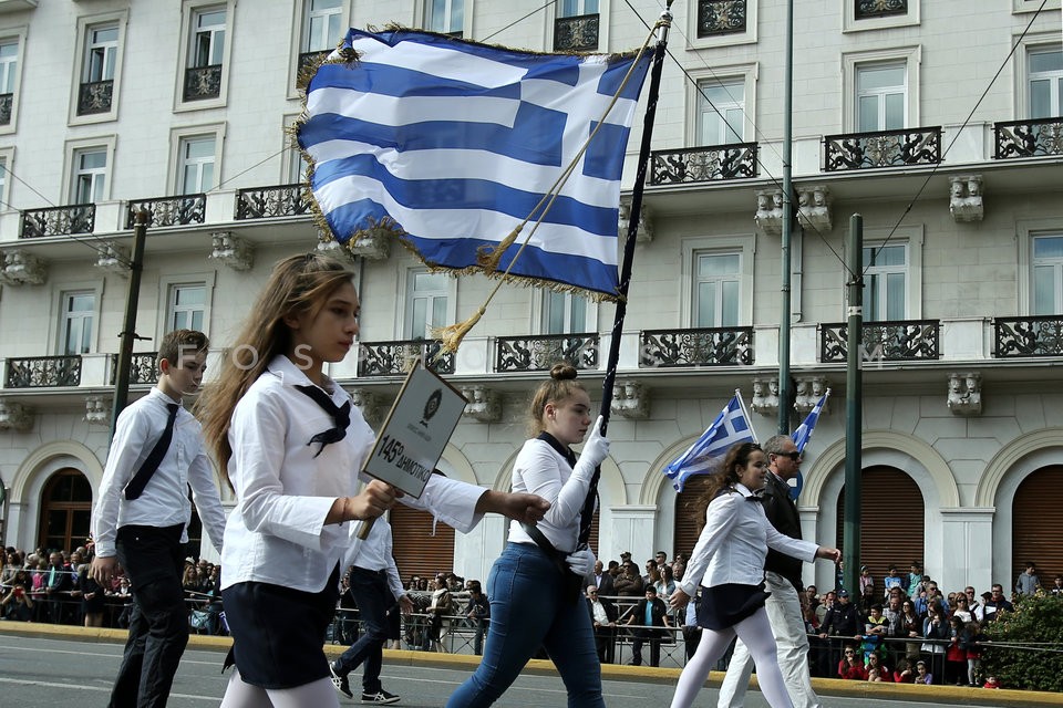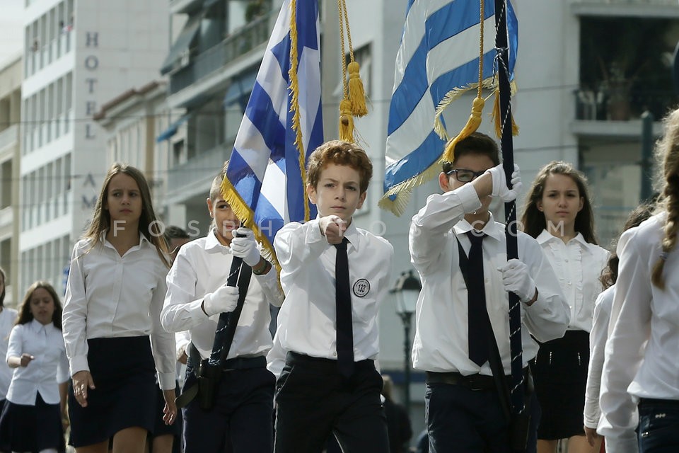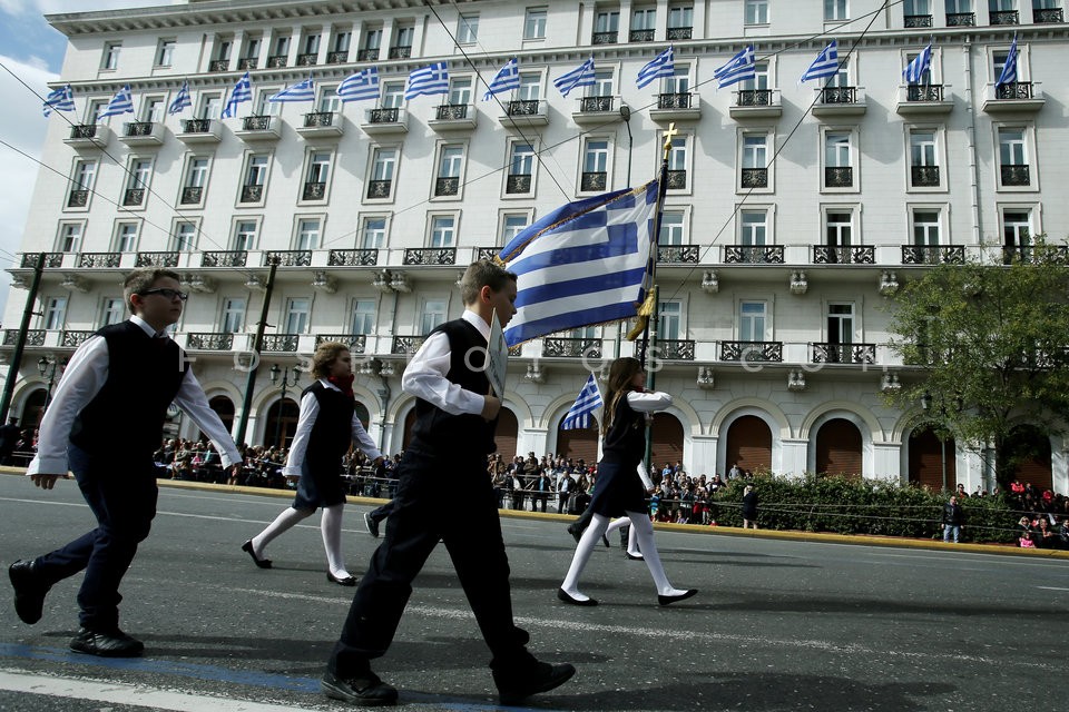 Elementary and high school pupils march …